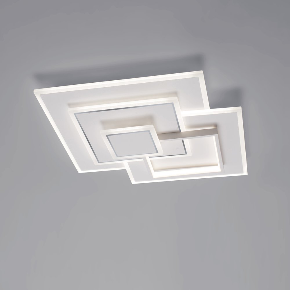 Plafoniera a led moderna con motivo a quadrati concentrici e sovrapposti, ideale per soggiorni, cucine e camere. Indicata per chi cerca non solo una semplice plafoniera a led, ma un vero e proprio complemento d'arredo. Oltre al design ricercato, il potete led da 40W assicura luminosità e comfort visivo in ogni ambiente.
