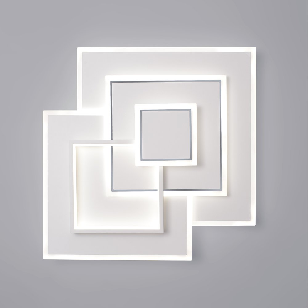 Plafoniera a led moderna con motivo a quadrati concentrici e sovrapposti, ideale per soggiorni, cucine e camere.