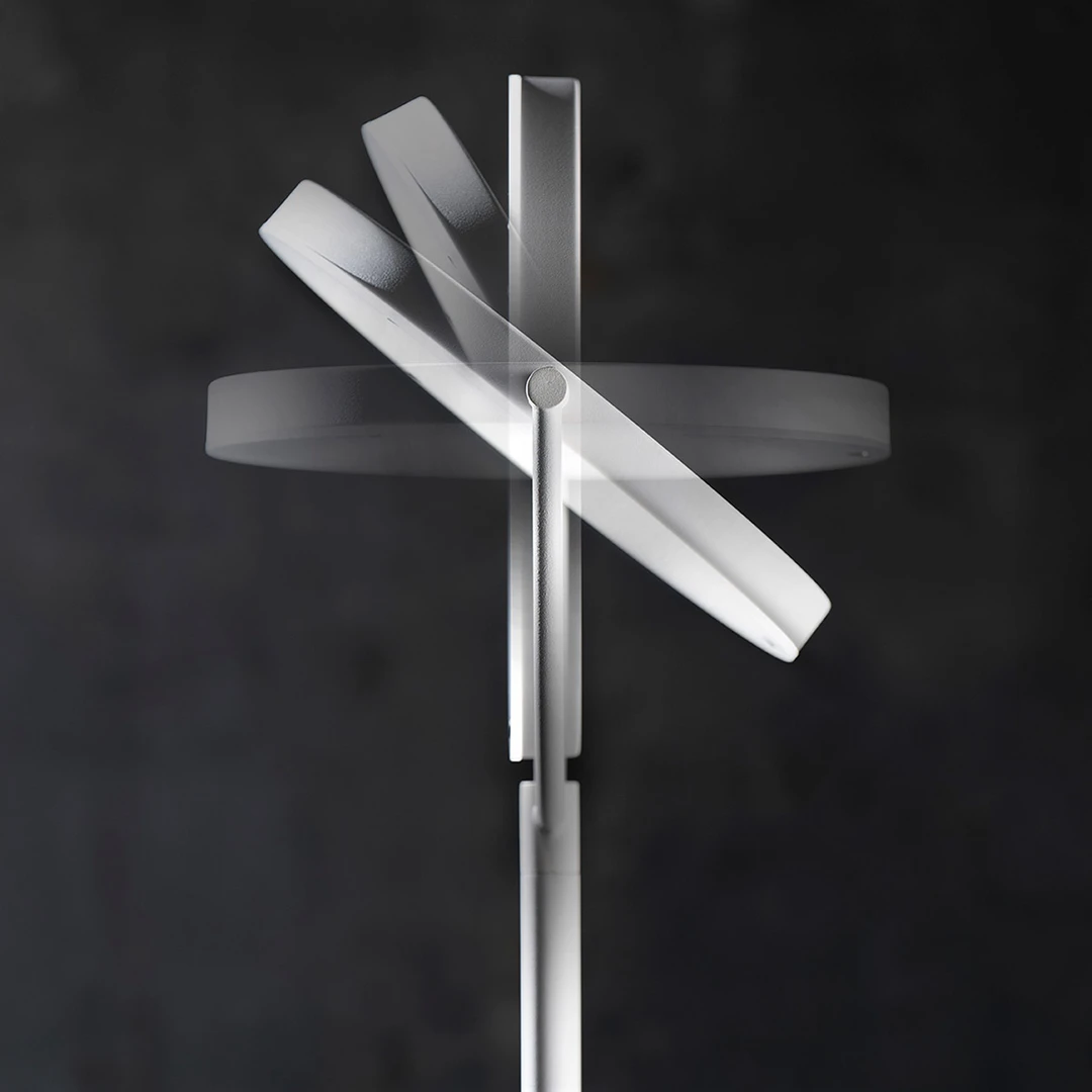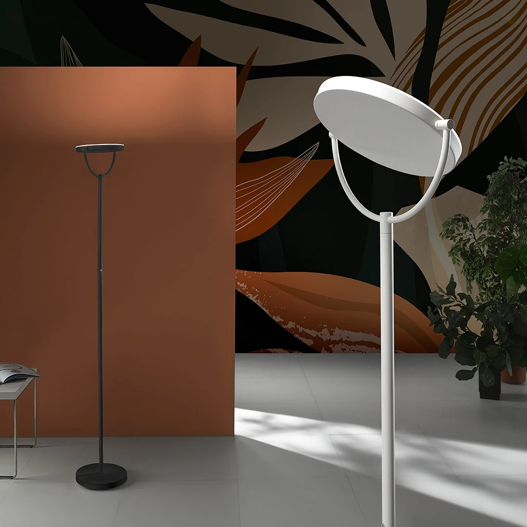 Il diffusore è orientabile a 360 gradi per ottenere all'occorrenza una luce diretta o indiretta, mentre la quantità di luce è regolabile dall'interruttore posto sullo stelo. La stabilità è garantita da una base tonda di diametro 25cm.